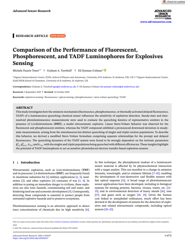 Michele Duarte Tonet, Graham A. Turnbull, Eli Zysman-Colman, Adv. Sensor Res., 2026, 5, e00137.